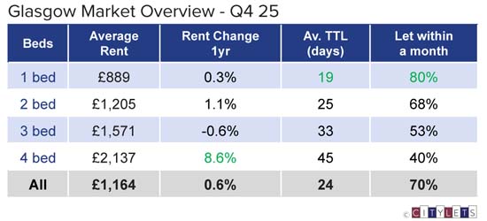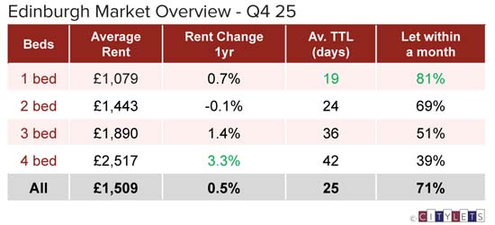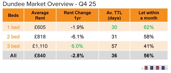 After years of sustained upward pressure, rents across Scotland’s major cities broadly remained steady throughout 2025, moving within a narrow range around zero with the exception of Dundee. Affordability, not excess demand, has become the dominant factor in rental growth.